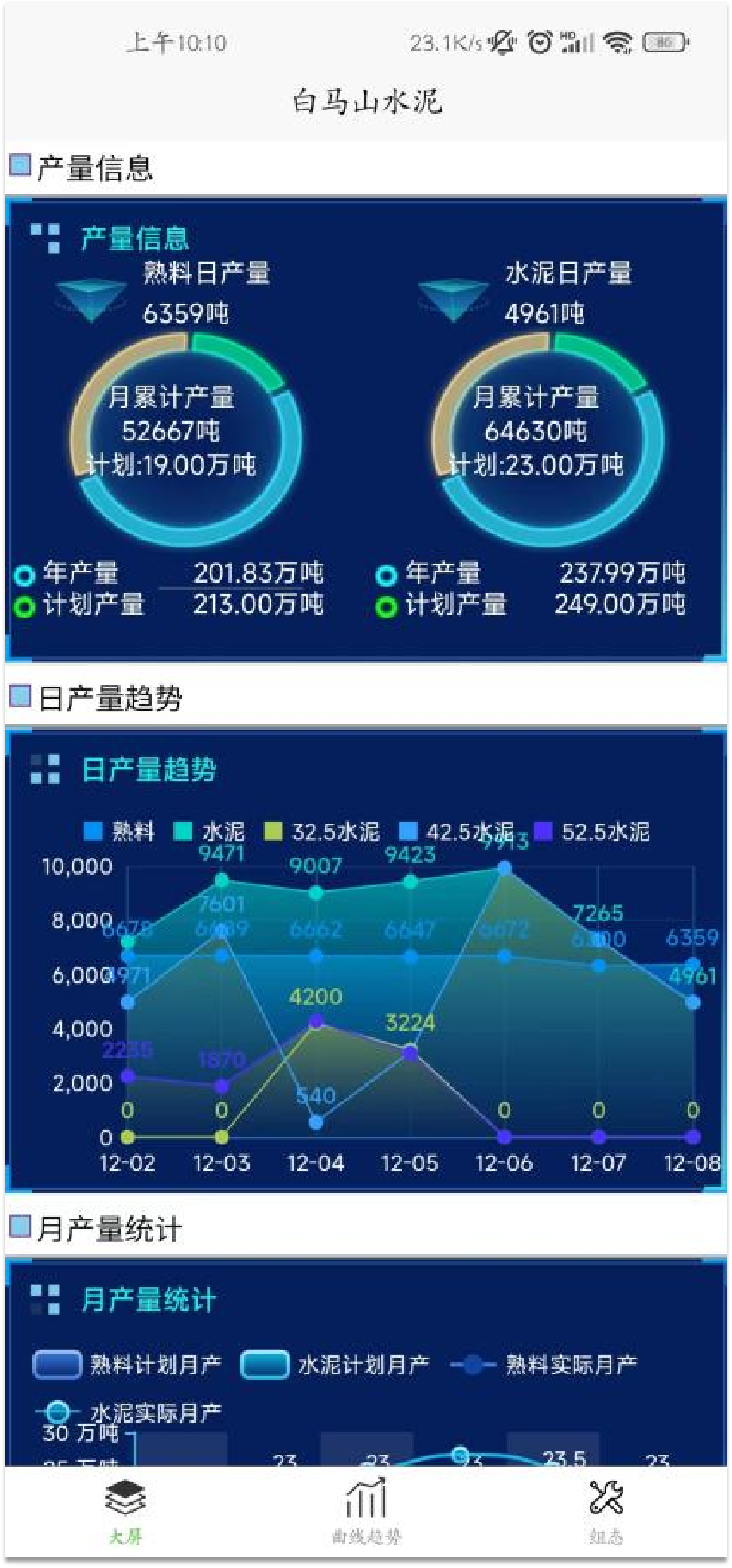 以生产管理需求为依据,梳理工厂DCS以及销发、能管等多个业务系统上万余项数据,形成大数据管理中心,提供数据资产服务。自动生成生产数据表单并上报,建立生产、质量、能源等多维度综合数据驾驶舱,提供移动端实时监控。