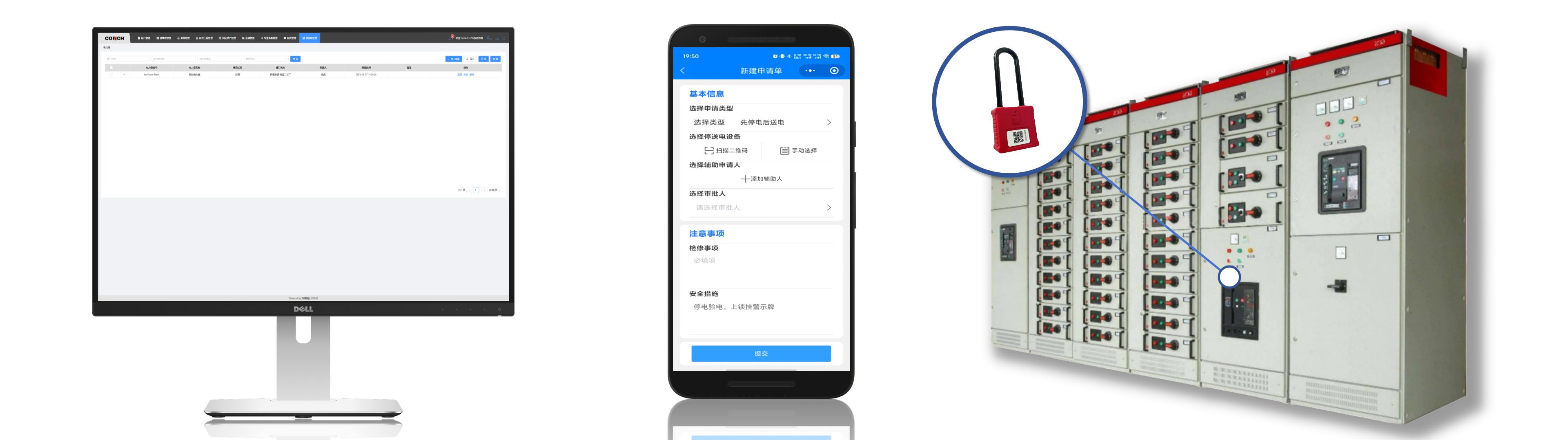 根据企业停送电管理要求,设计线上管理流程,终端通过蓝牙技术与智能安全锁具进行通讯,依据权限和业务流程的判定结果来控制锁具的开闭操作。