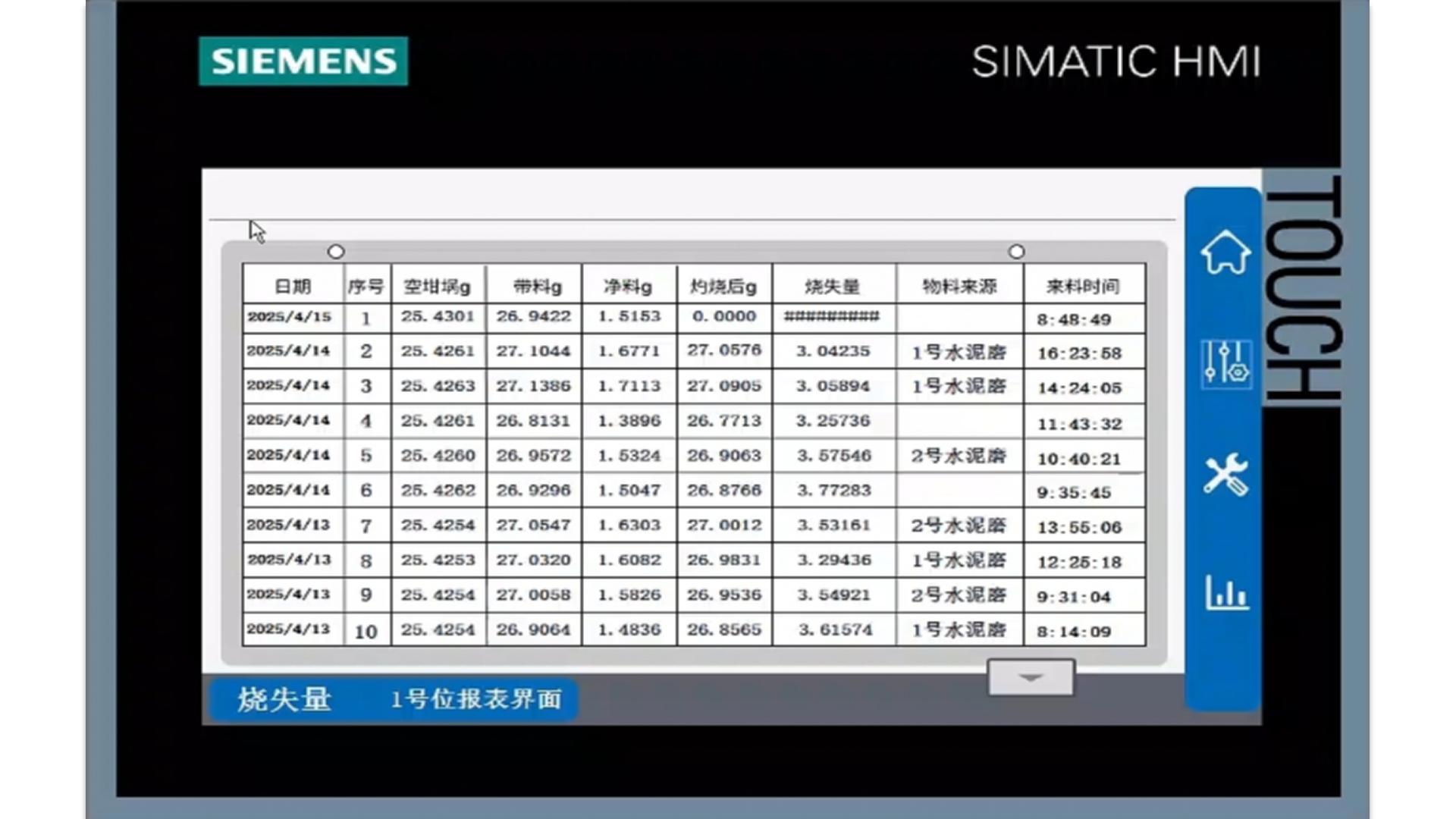 利用自动取样、定量、称量及高温灼烧等技术实现烧失量的检测。用于出磨水泥烧失量及热生料分解率的在线检测,检测数据自动上传至上位机系统。成效: