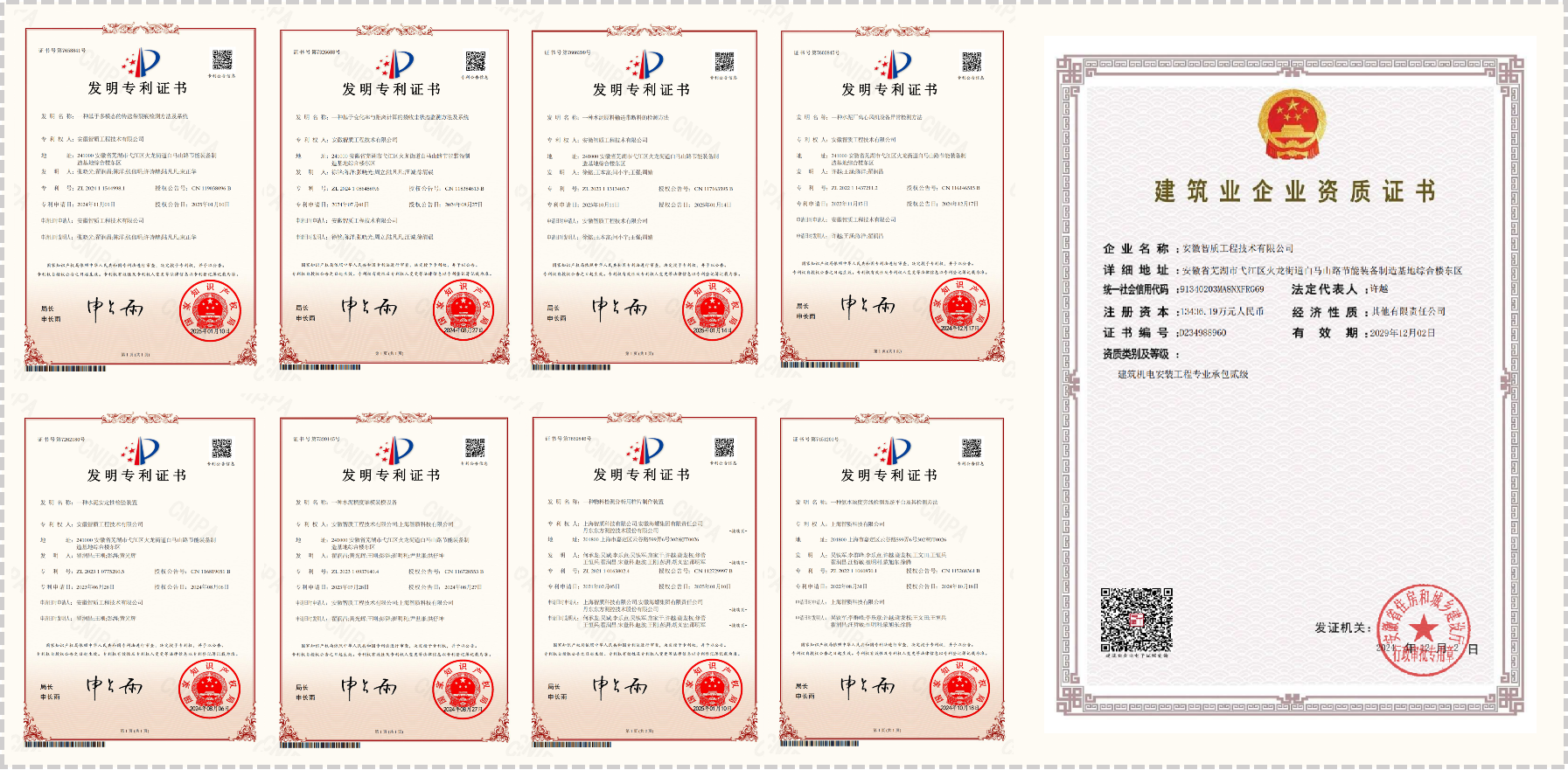 共取得各类知识产权共计208项,其中专利授权84项,软著90项,取得机电总承包二级等资质