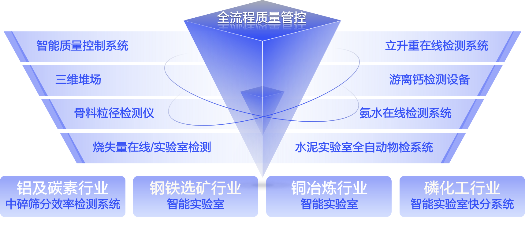 基于全流程、多系统协同管控理念,打破传统半流程或局部质量控制思想,在自主研发智能质量控制系统基础上增加煤粉自动取样、烧失量在线检测、氨水在线检测、全自动物理检测系统、出厂产品智能取样仓储、三维堆场等新产品,实现从矿山开采到出厂产品自动取样、输送、检测、留样到智能配料一体化全流程管控。