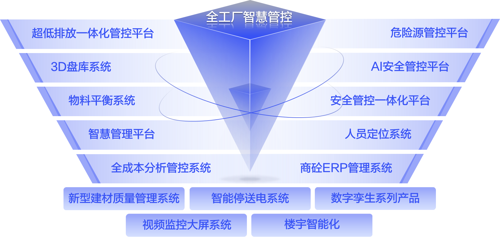 面向生产执行和经营决策,以水泥生产为主线,融合工业控制、智能质量控制、财务、销发、供应链管理等系统数据,贯穿计划、调度、绩效、成本等环节,配合物料平衡、数字孪生、成本分析等系统,实现数据标准化、业务流程化、决策智慧化的管理目标。